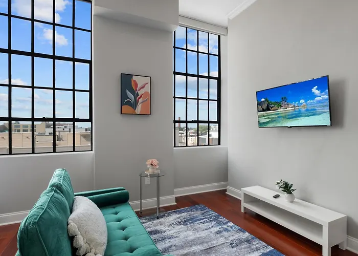 O apartamento Grand Studio Apt With Private Gym oferece cozinha totalmente equipada, bem como quartos com pátio, máquinas de café/chá e TV. Está perto de Crane Arts, enquanto estação de metro de Girard está a 350 metros de distância.